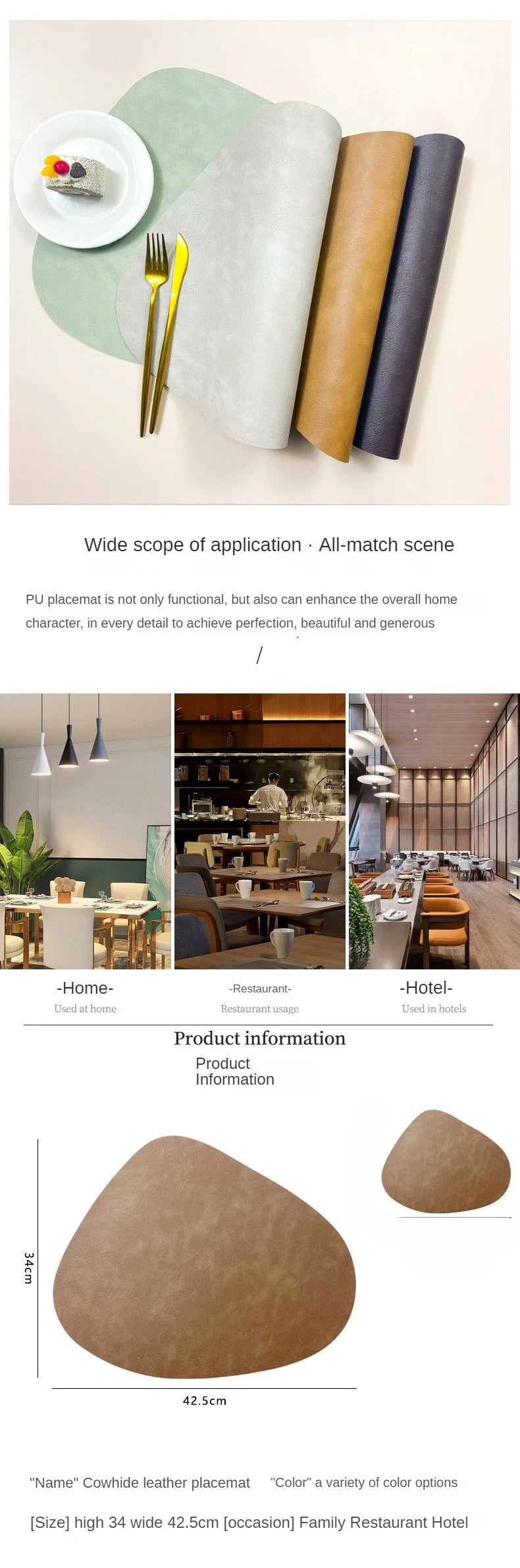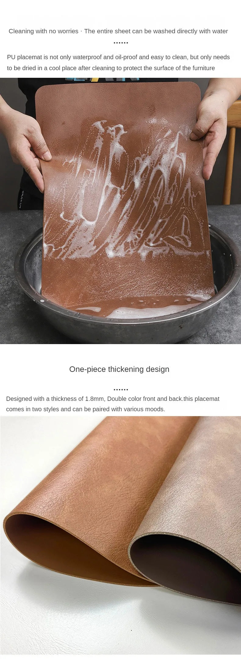 Double-Sided Design – Reversible PU leather offers two stylish color options for easy table refreshes.