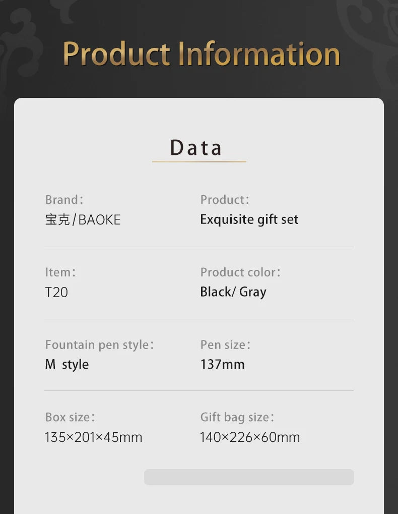 Inform when this item available BAOKE T18/T19/T20 Fountain Pen Gift Set – Smooth Writing with Ink & Cartridges
