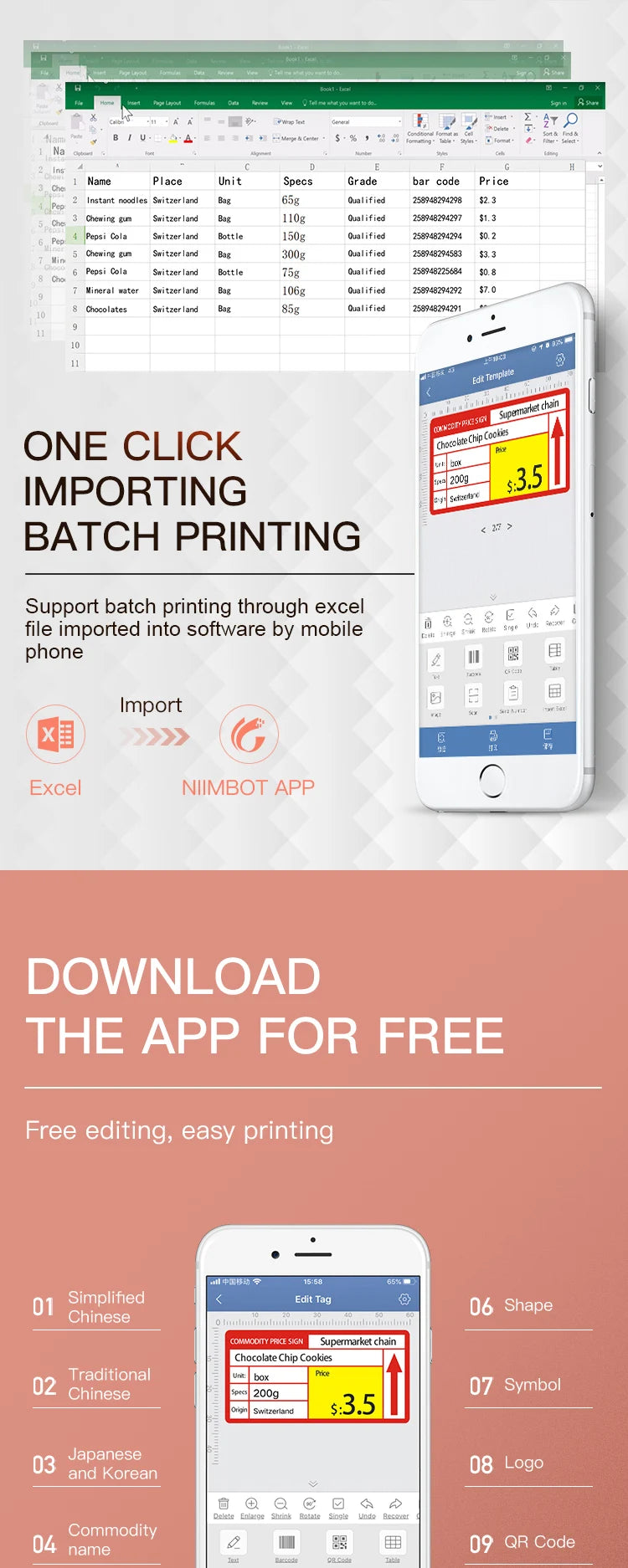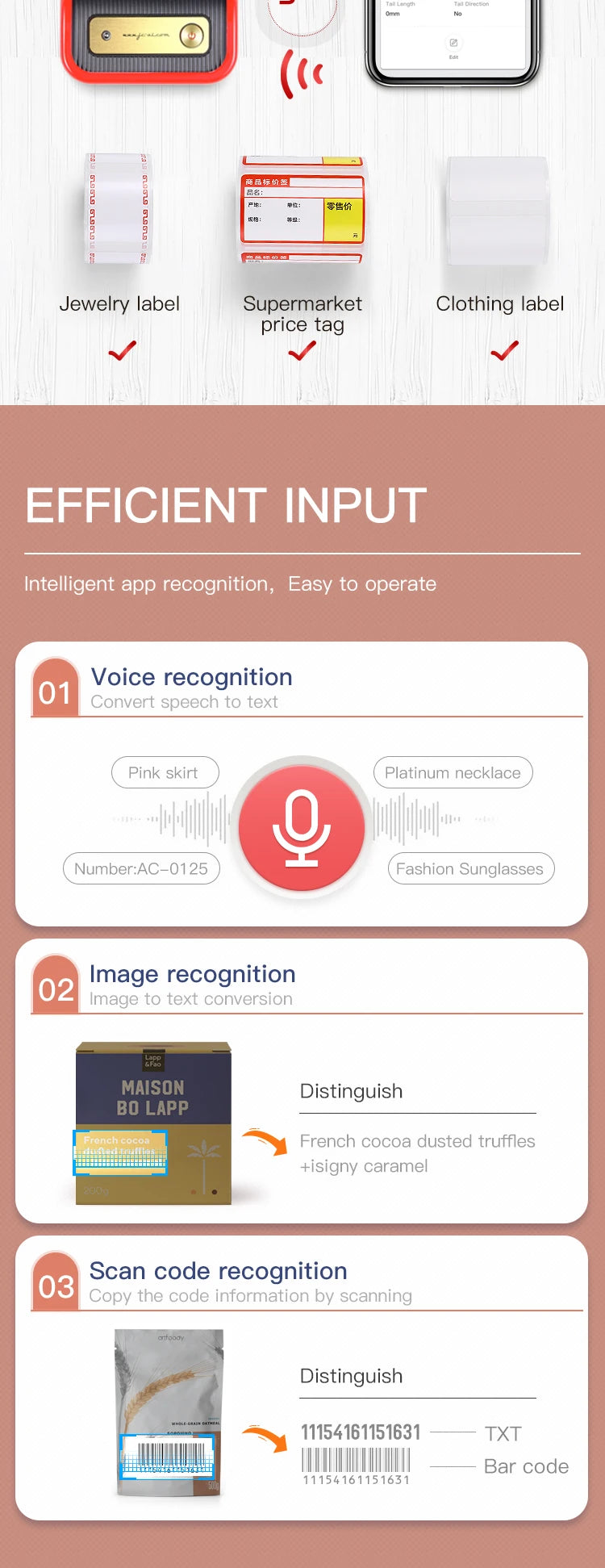 Customizable Labels – Use the app to design and print text, barcodes, QR codes, or cute graphics.