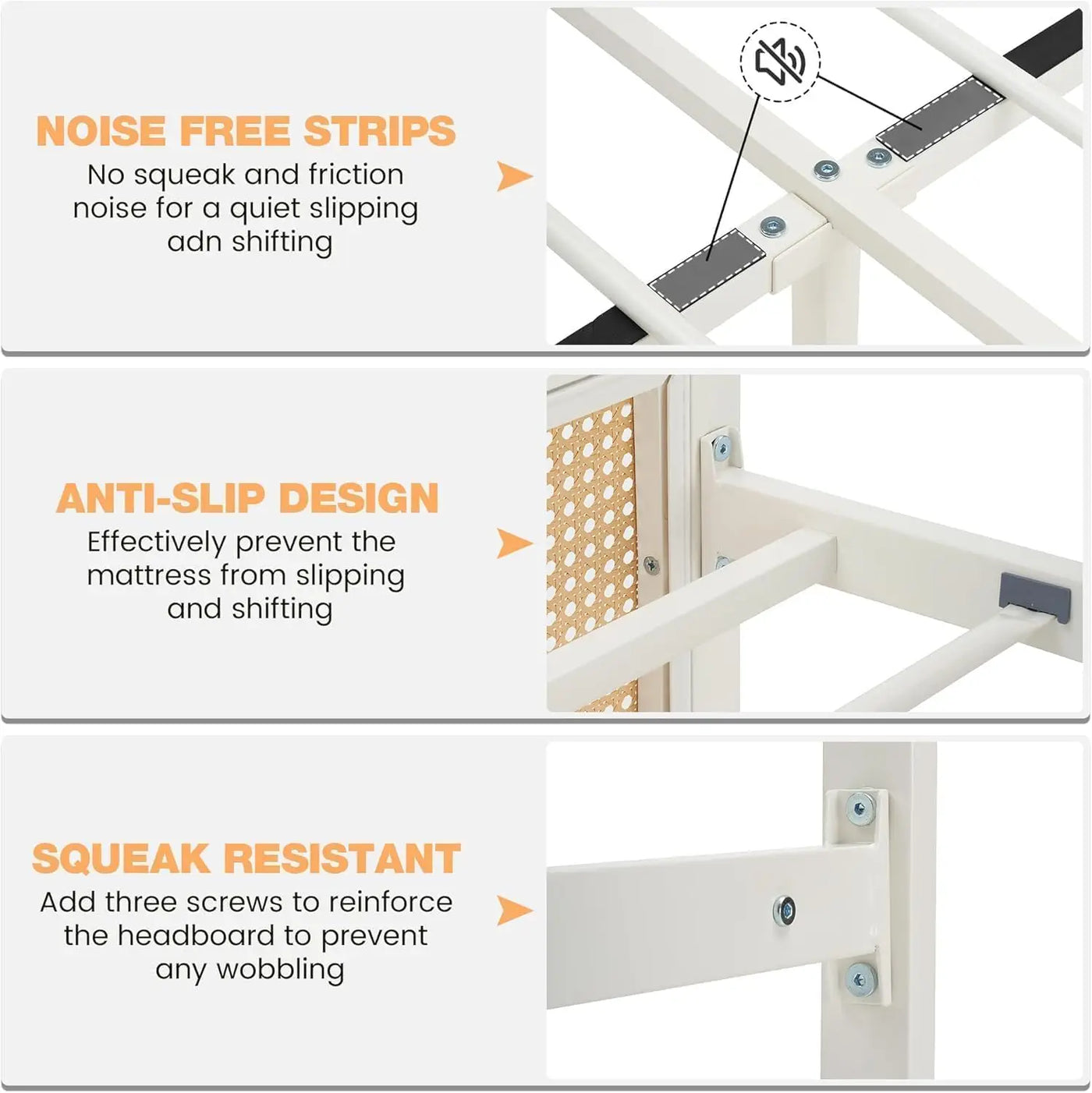 Inform when this item available Queen Size Bohemian Rattan Platform Bed Frame with Headboard – Metal Slats, No Box Spring Needed
